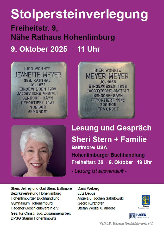Meier Meyer hatte damals einen Schrotthandel in der Hohenlimburger Innenstadt. Die Wohnung des Ehepaares nahe der Limburger Freiheit wurde im Zuge der sogenannten „Reichskristallnacht“ geplündert. Im Jahr 1942 wurde das Ehepaar Meyer in das Vernichtungslager Sobibor im damaligen besetzten Polen deportiert.